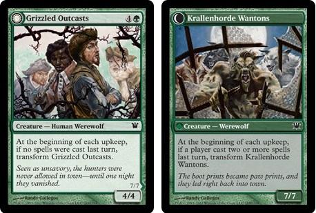 | Rules Text: | At the beginning of each upkeep, if no spells were cast last turn, transform Grizzled Outcasts. |