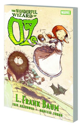 The premiere American fantasy adventure gets the Merry Marvel treatment! Eisner Award-winning writer/artist Eric Shanower (Age of Bronze) teams up with fan-favorite artist Skottie Young (New X-Men) to bring L. Frank Baum's beloved classic to life! When Kansas farm girl Dorothy flies away to the magical Land of Oz, she fatally flattens a Wicked Witch, liberates a living Scarecrow and is hailed by the Munchkin people as a great sorceress...but all she really wants to know is: how does she get home? Collecting THE WONDERFUL WIZARD OF OZ #1-8.